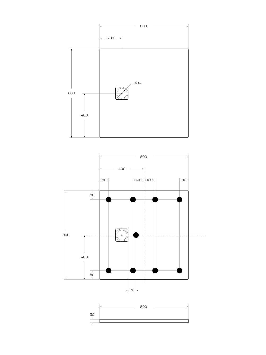 Высота поддона 30 мм позволяет установить поддон непосредственно на пол или вровень с полом.