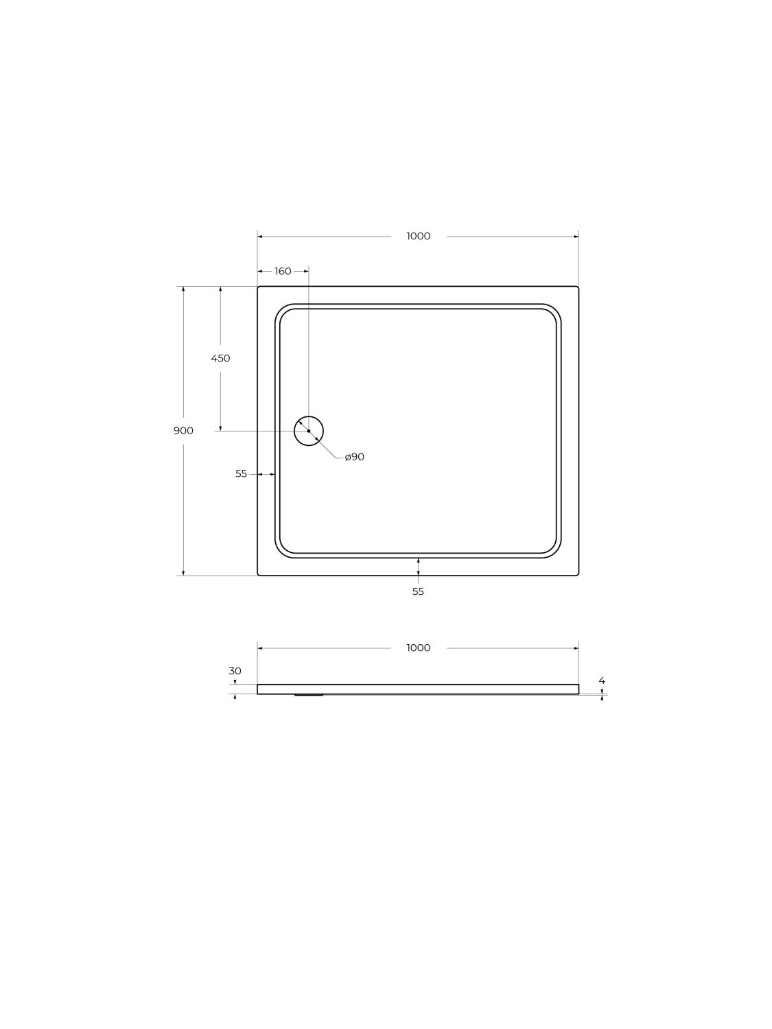 Высота поддона 30 мм позволяет установить поддон непосредственно на пол или вровень с полом.