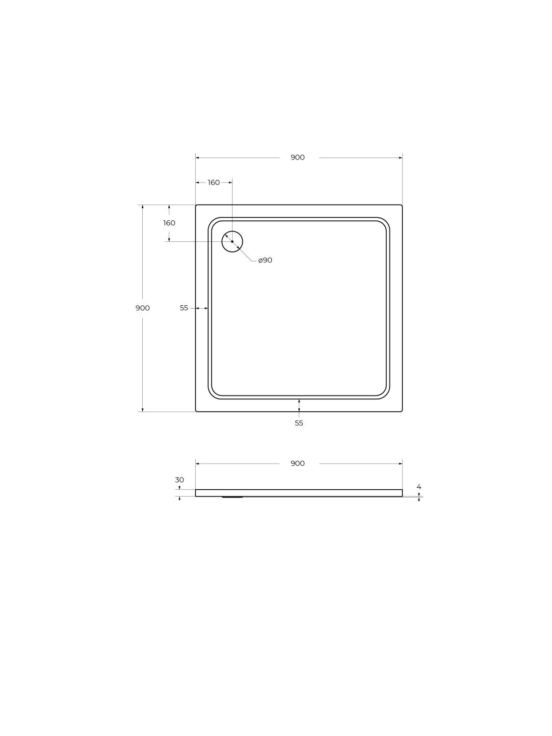 Высота поддона 30 мм позволяет установить поддон непосредственно на пол или вровень с полом.