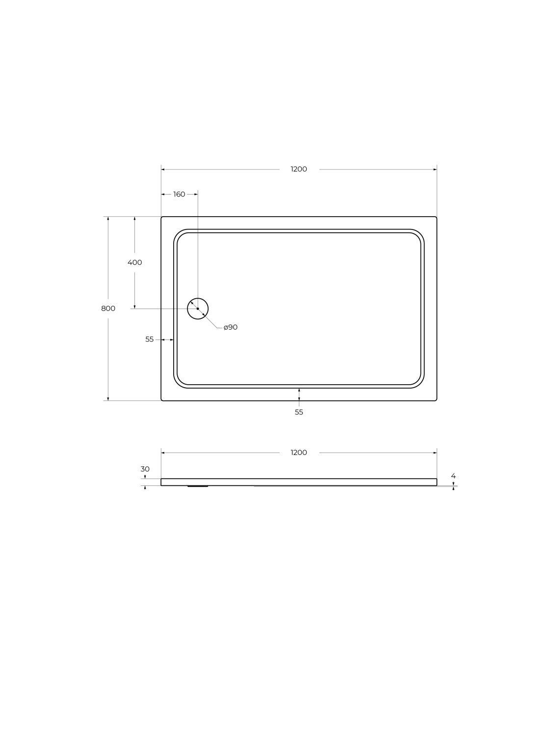 Высота поддона 30 мм позволяет установить поддон непосредственно на пол или вровень с полом.