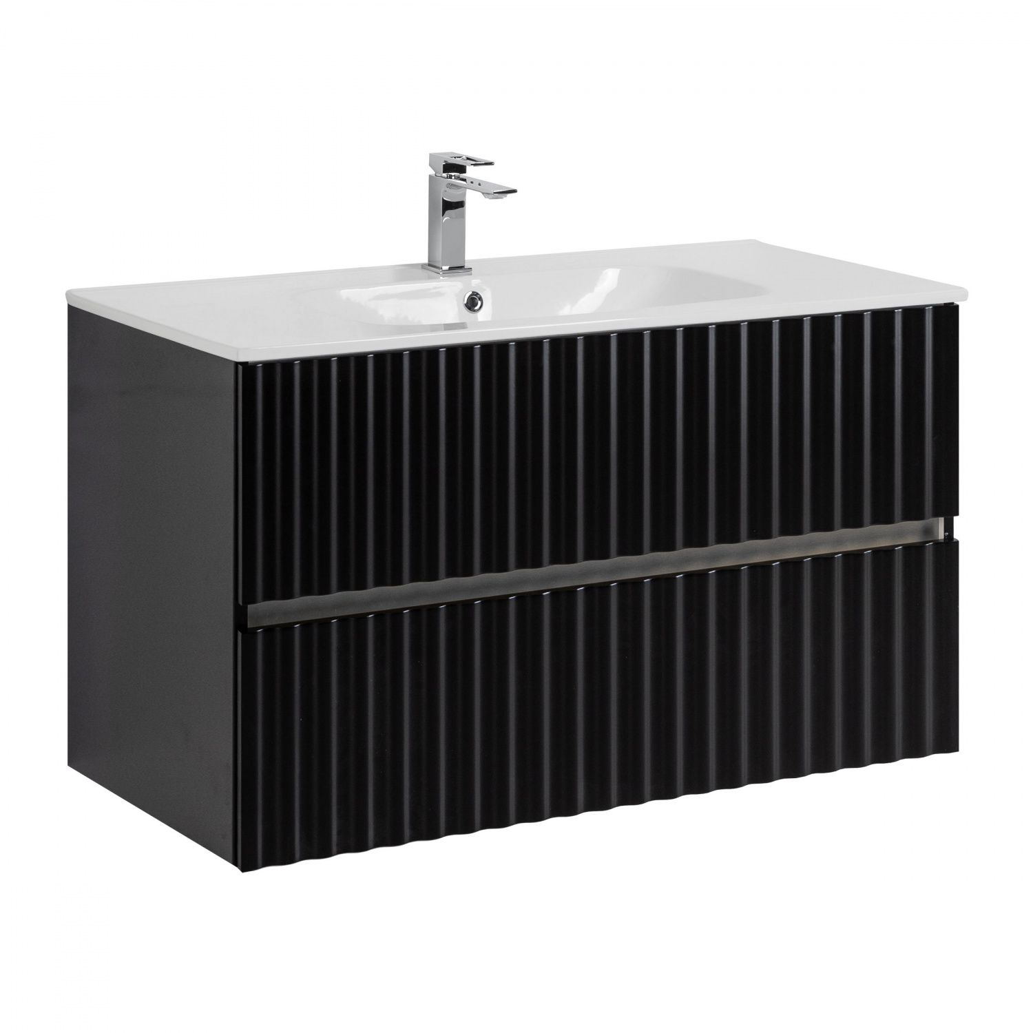 Мебель для ванной комнаты подвесная с LED подсветкой ручек Art&Max ЭЛЕГАНТ ELEGANT 100 см Черный матовыйОписание