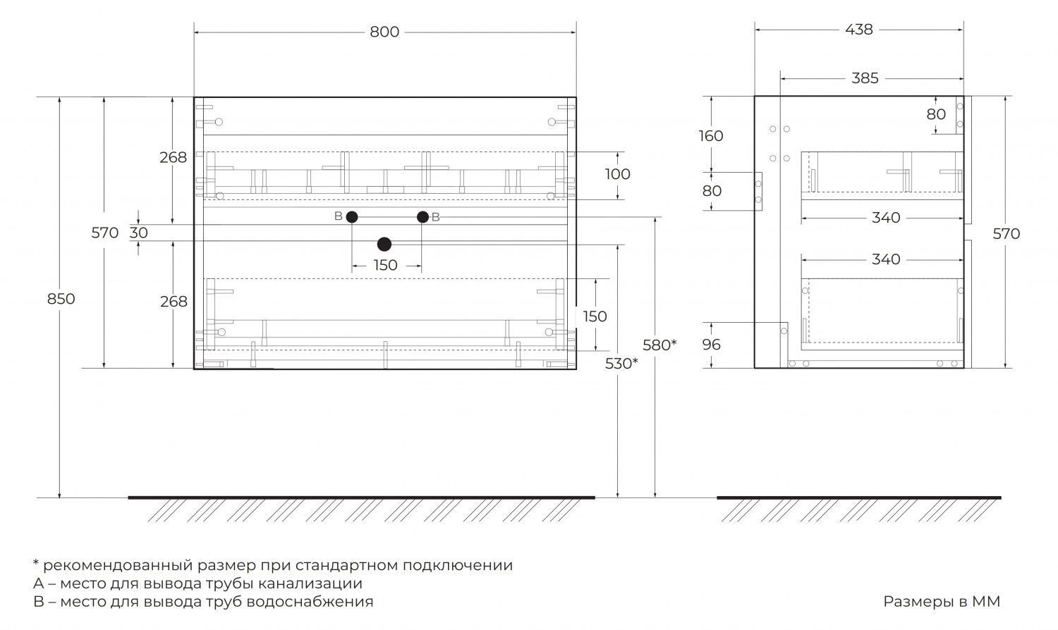 База под раковину подвесная Art&Max AM-ELEGANT-800-2C-SO-NG-P
