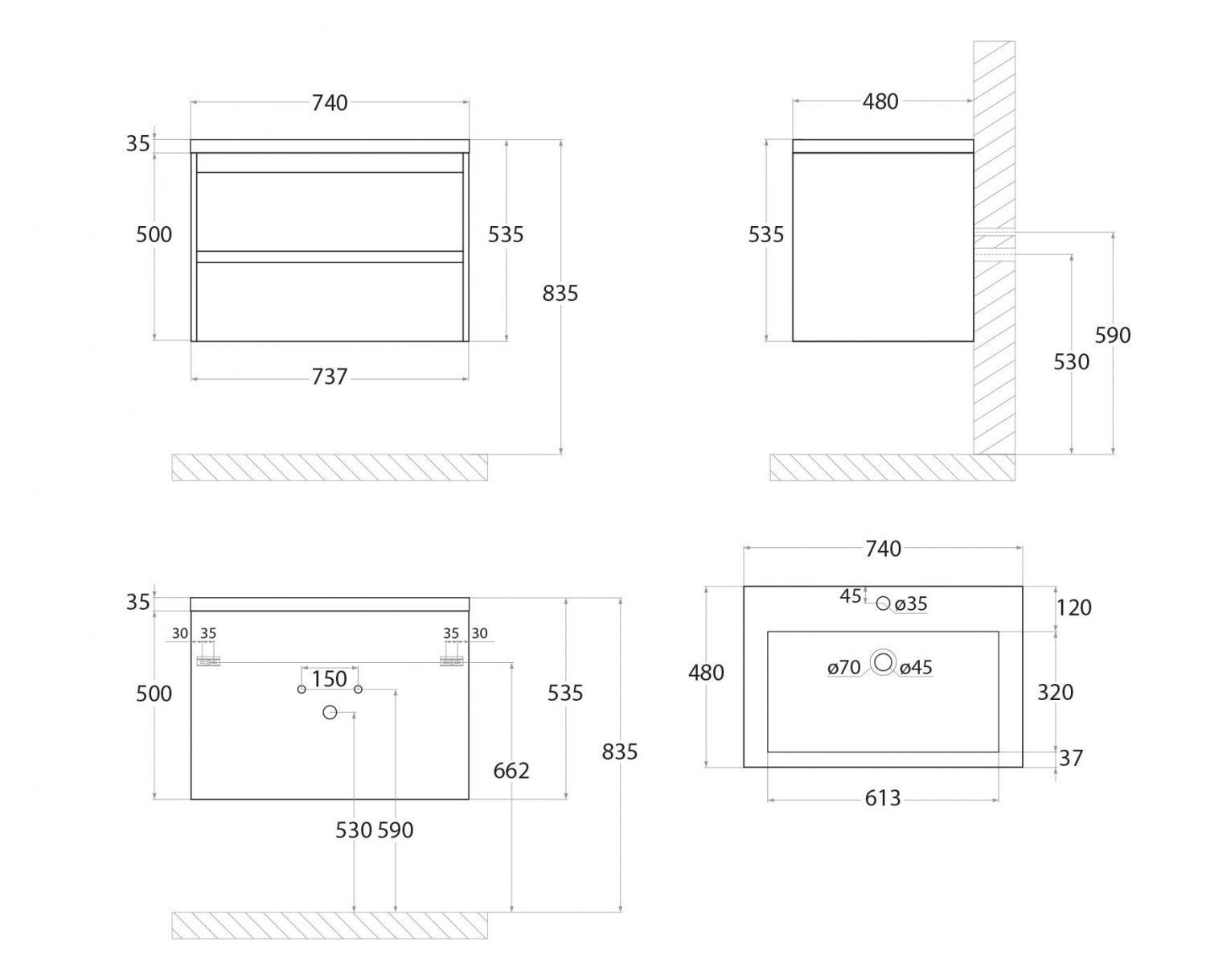 База под раковину подвесная с двумя выкатными ящиками Art&Max Family-M-750-2C-SO-BO