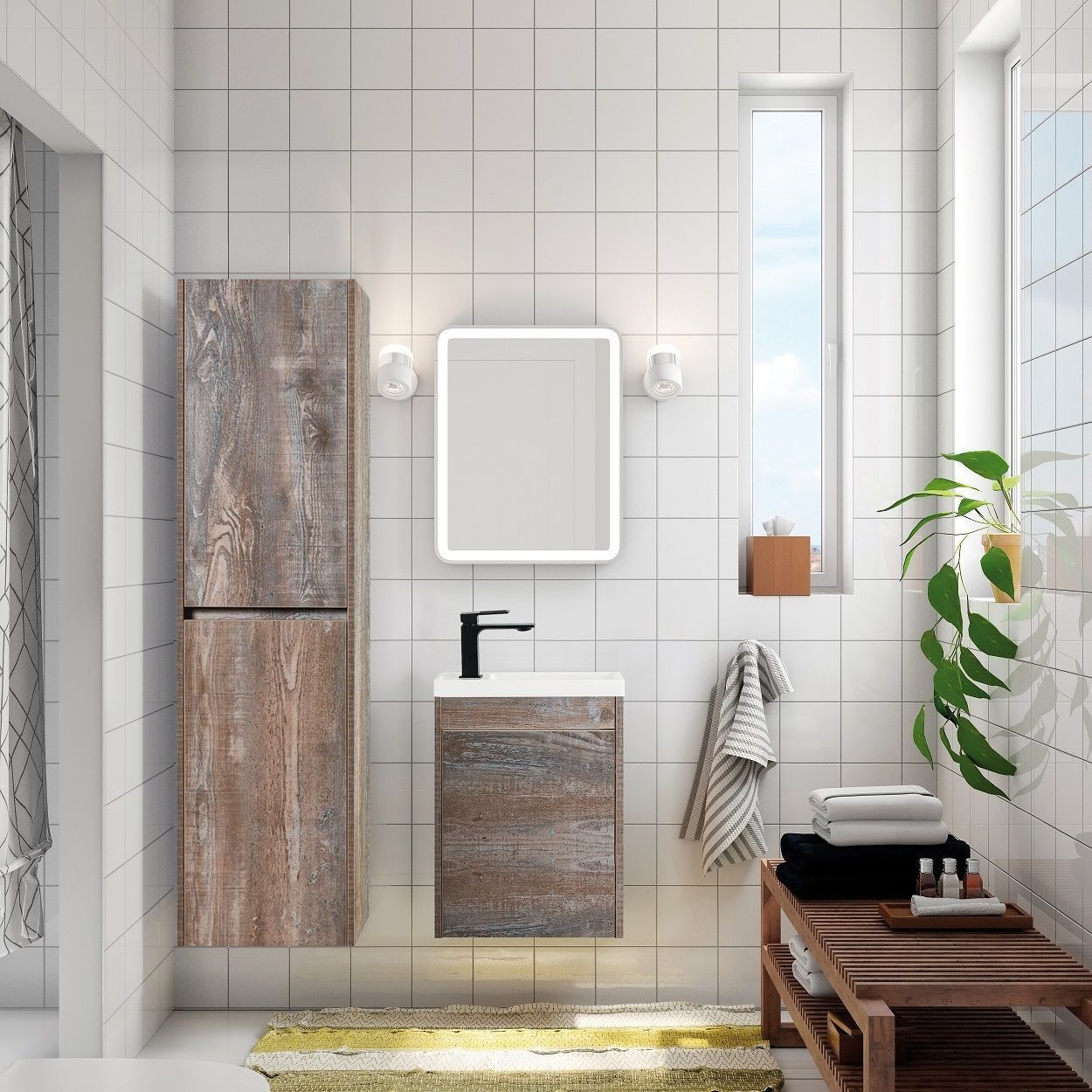 Комплект мебели для ванной комнаты с раковиной из искусственного камня