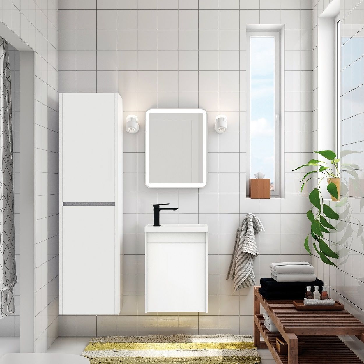 Мебель для ванной комнаты с одной распашной дверцей Art&Max FAMILY 40 см Bianco Lucido