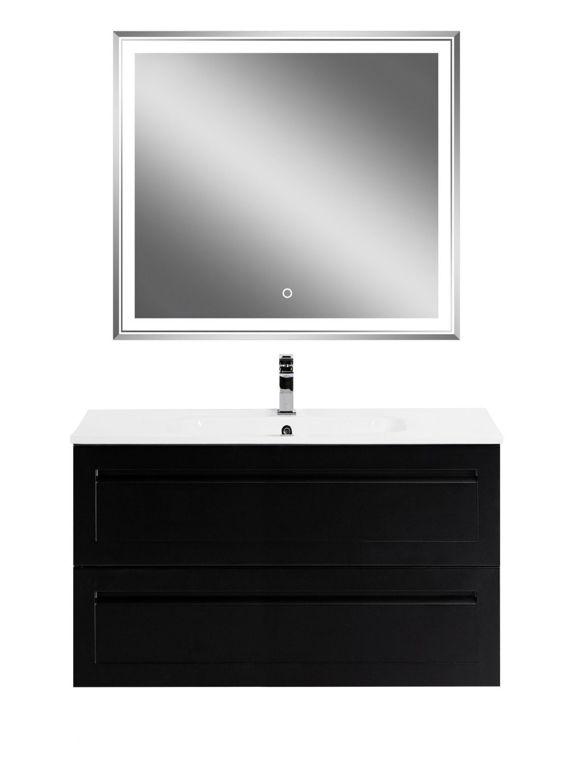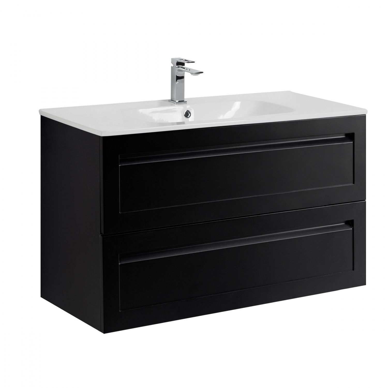 Мебель для ванной комнаты подвесная с керамической раковиной Art&Max ПЛАТИНО PLATINO 100 см Черный матовый