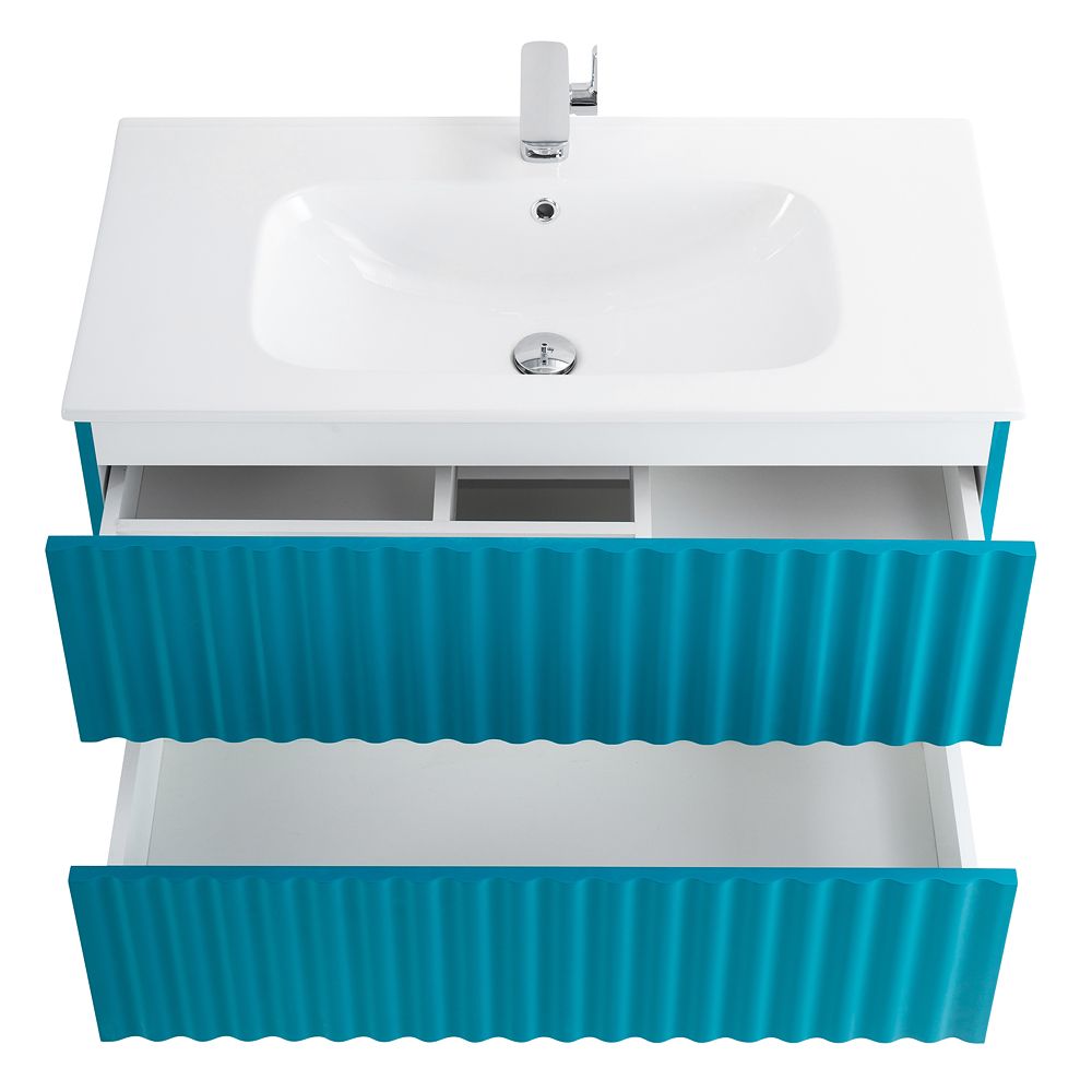 Мебель для ванной комнаты подвесная с LED подсветкой ручек Art&Max ЭЛЕГАНТ ELEGANT 90 см Бирюзовый матовый