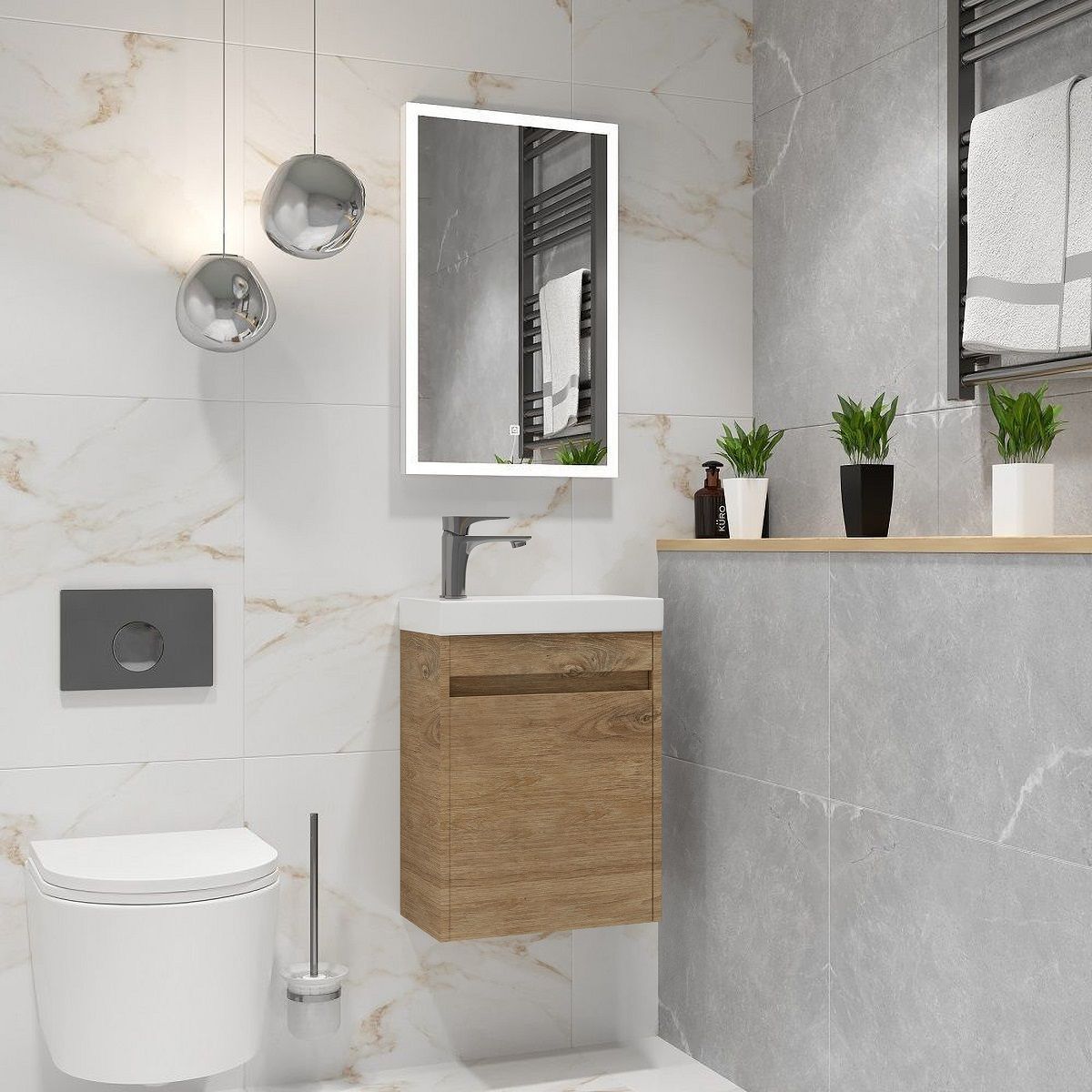 Мебель для ванной комнаты с одной распашной дверцей Art&Max ФЕМЕЛИ-М FAMILY-M 40 см Дуб Харбор золотой