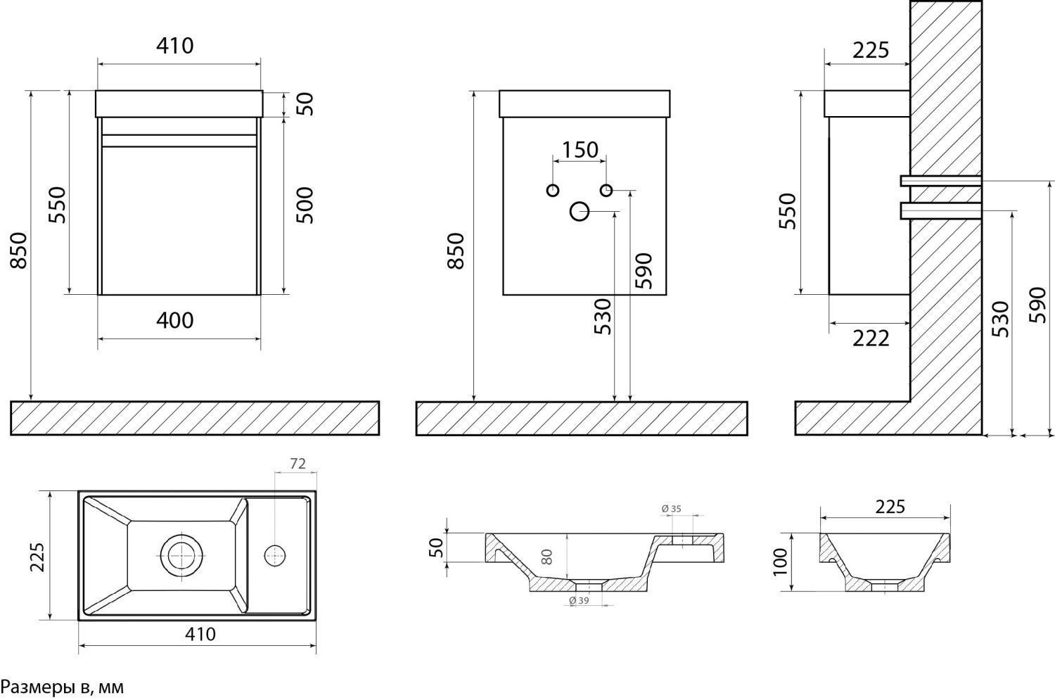 Комплект мебели для ванной комнаты с раковиной из искусственного камня