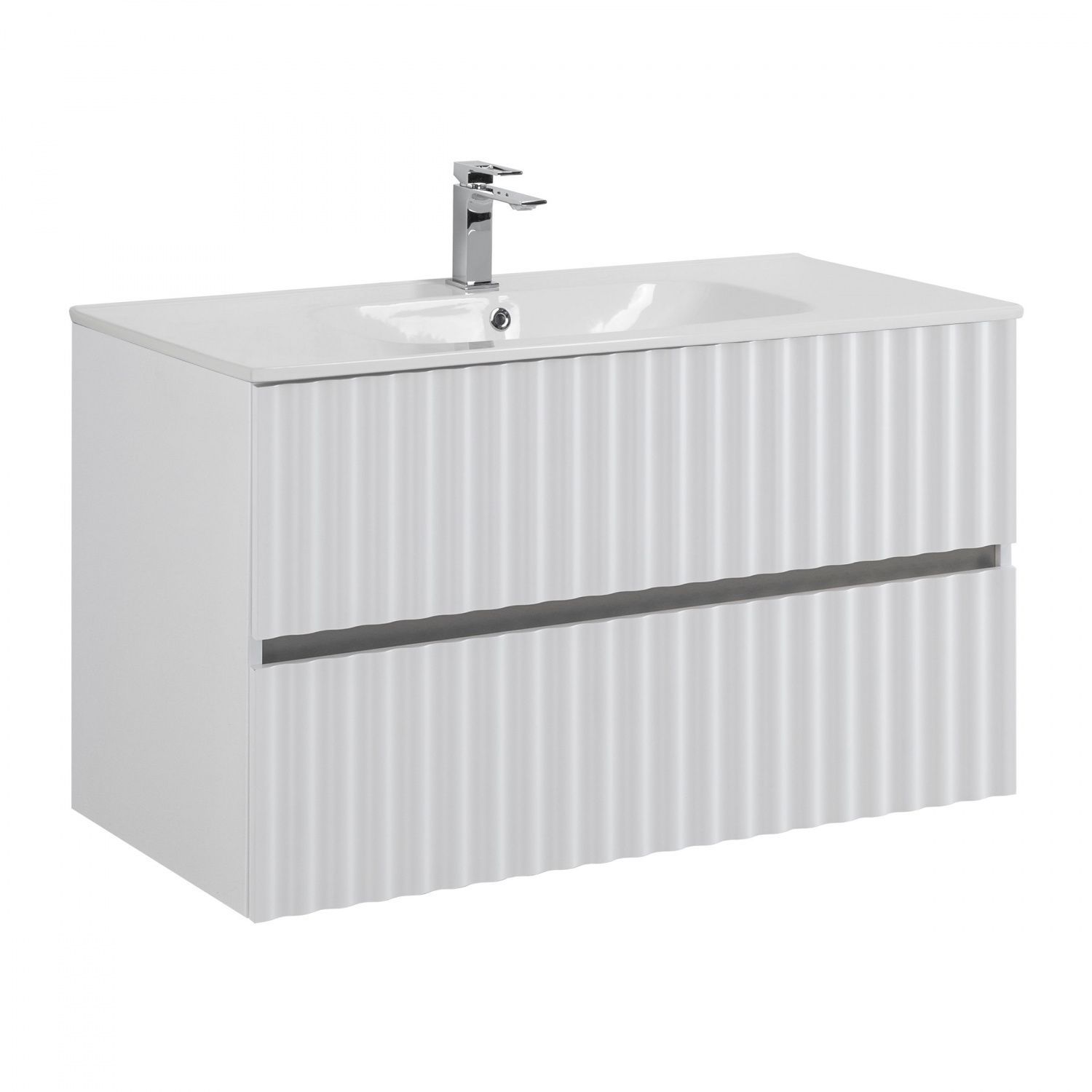 Мебель для ванной комнаты подвесная с LED подсветкой ручек Art&Max ЭЛЕГАНТ ELEGANT 100 см Белый матовый