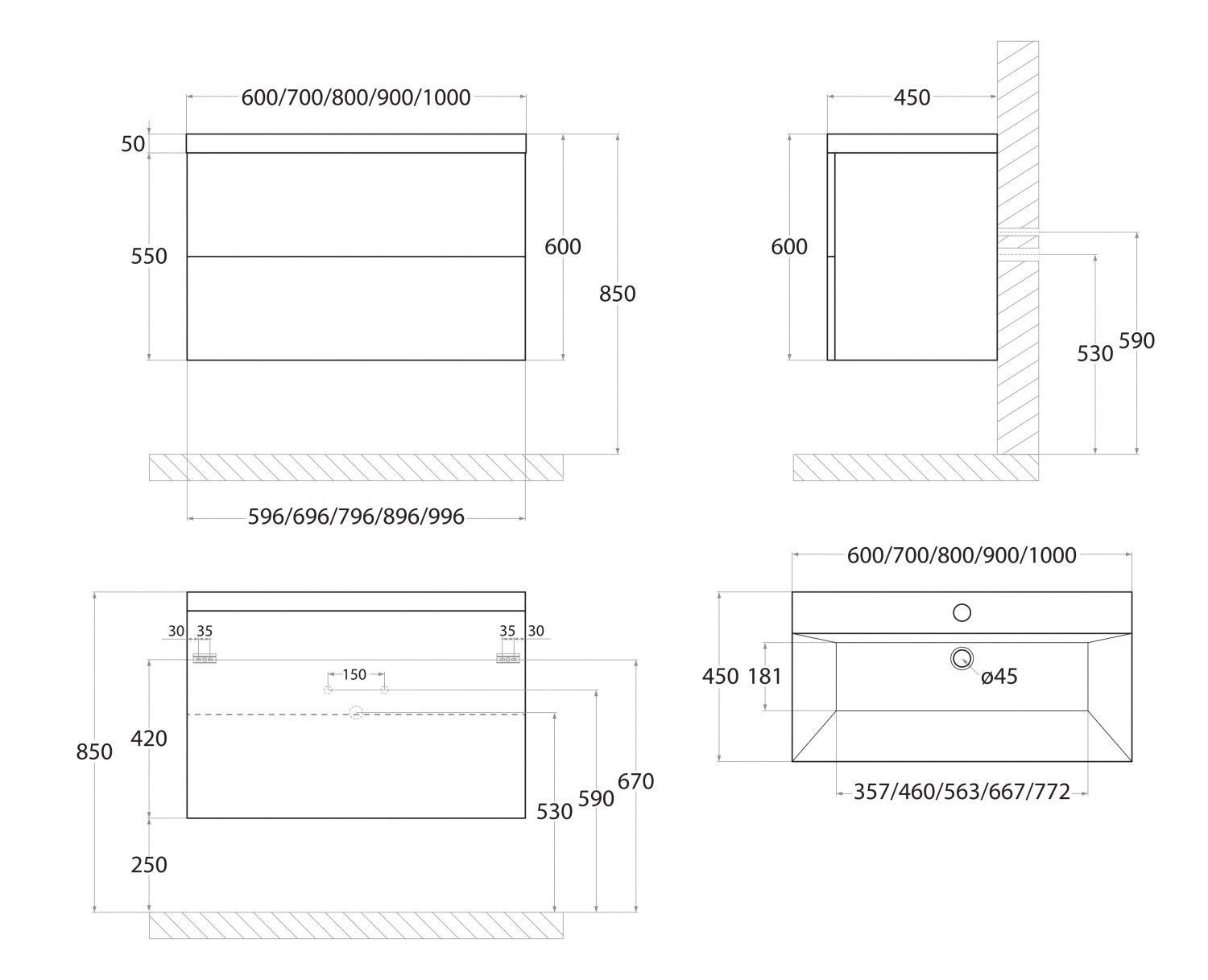 Комплект мебели для ванной комнаты с раковиной из искусственного камня