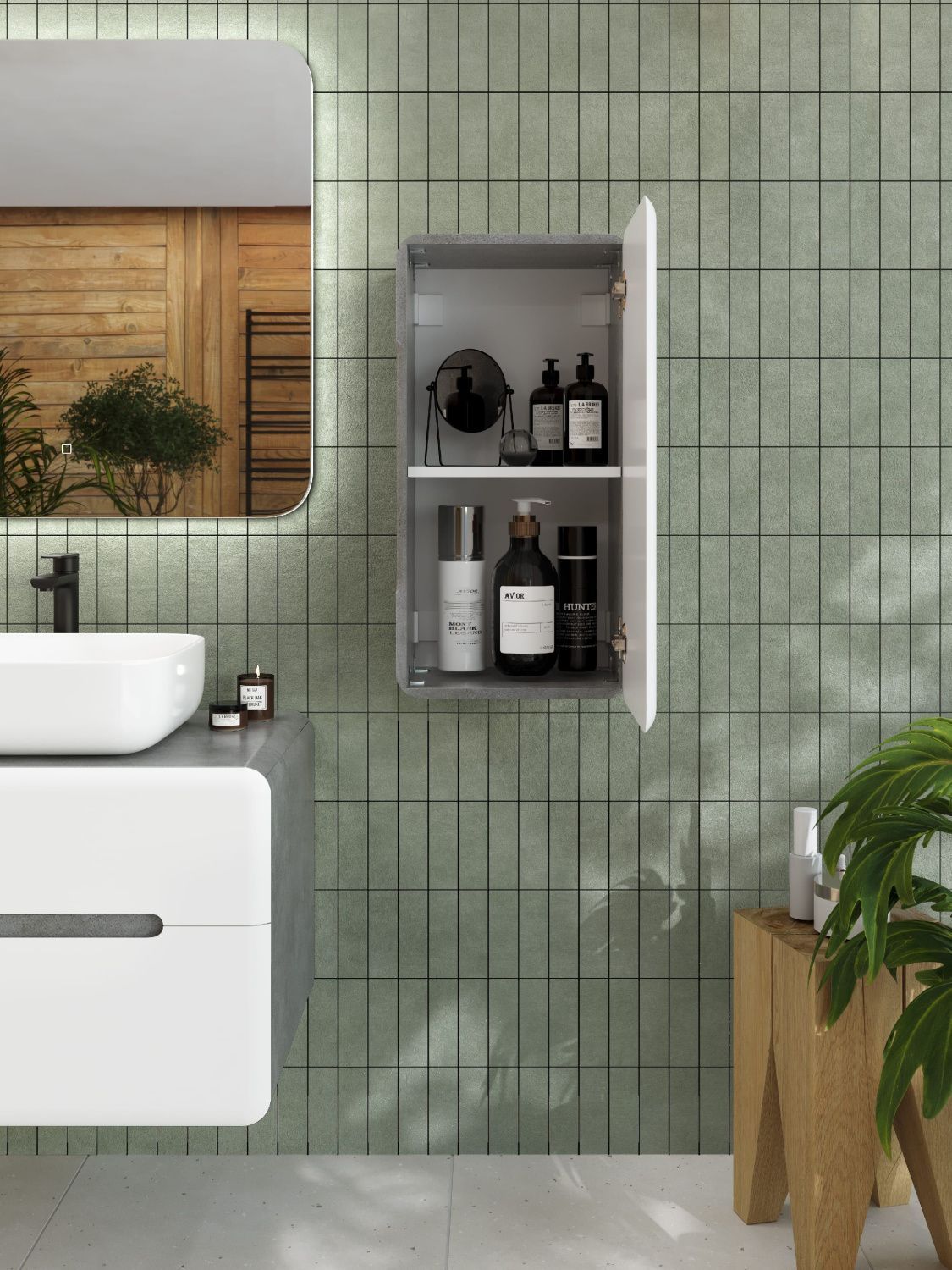 Шкаф подвесной для ванной комнаты с одной дверкой и деревянной полкой