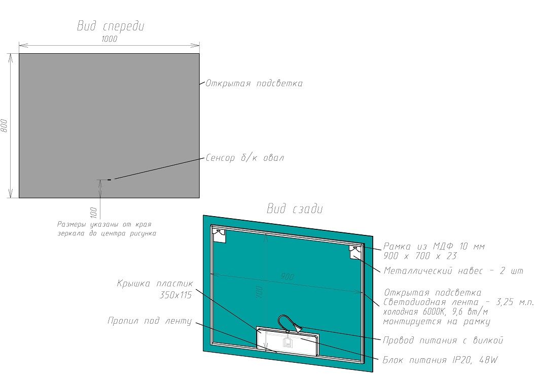 Оснащение: зеркало, крепеж, коробка, инструкция.