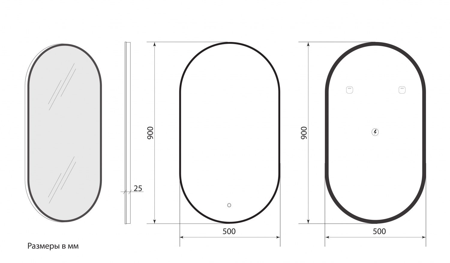Зеркало с подсветкой ART&MAX Торино Torino AM-Tor-500-900-DS-F-Nero