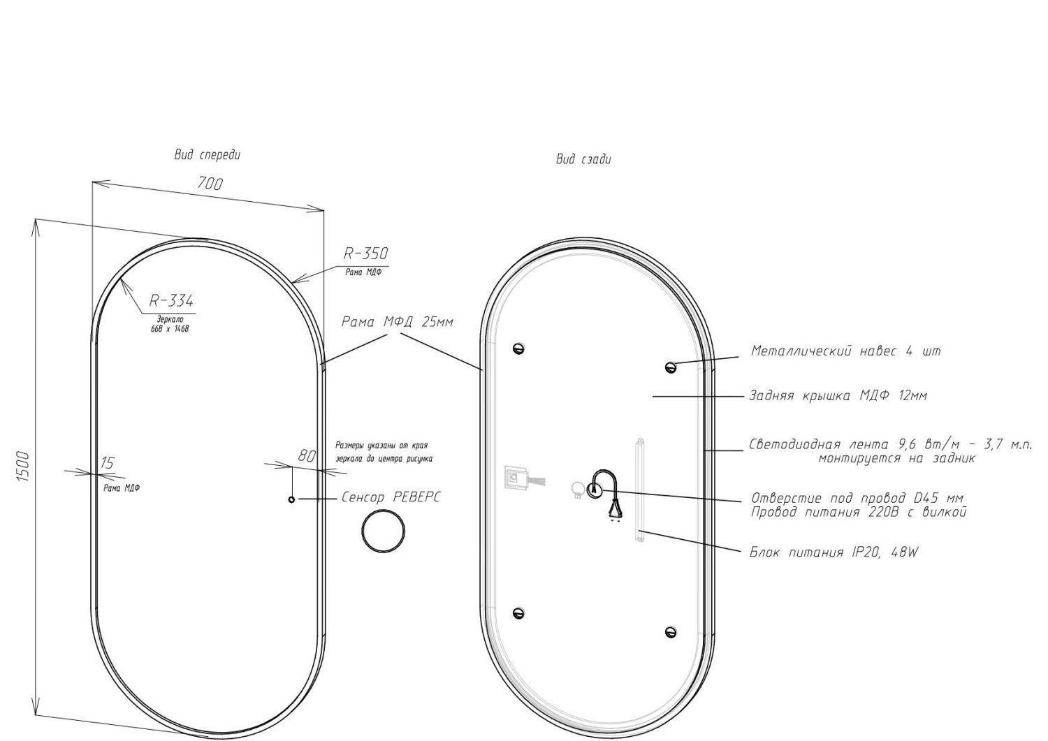 Оснащение: зеркало, крепеж, коробка, инструкция