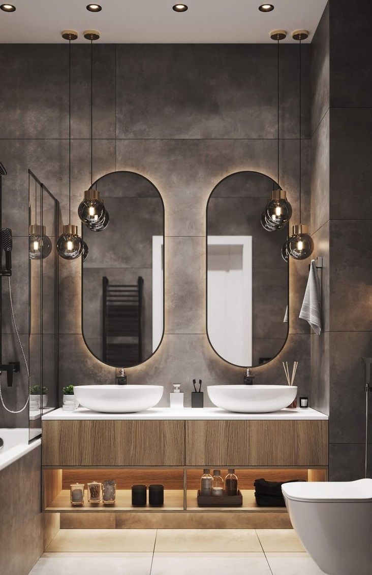 Открытая ореольная подсветка создает эффект парящего зеркала