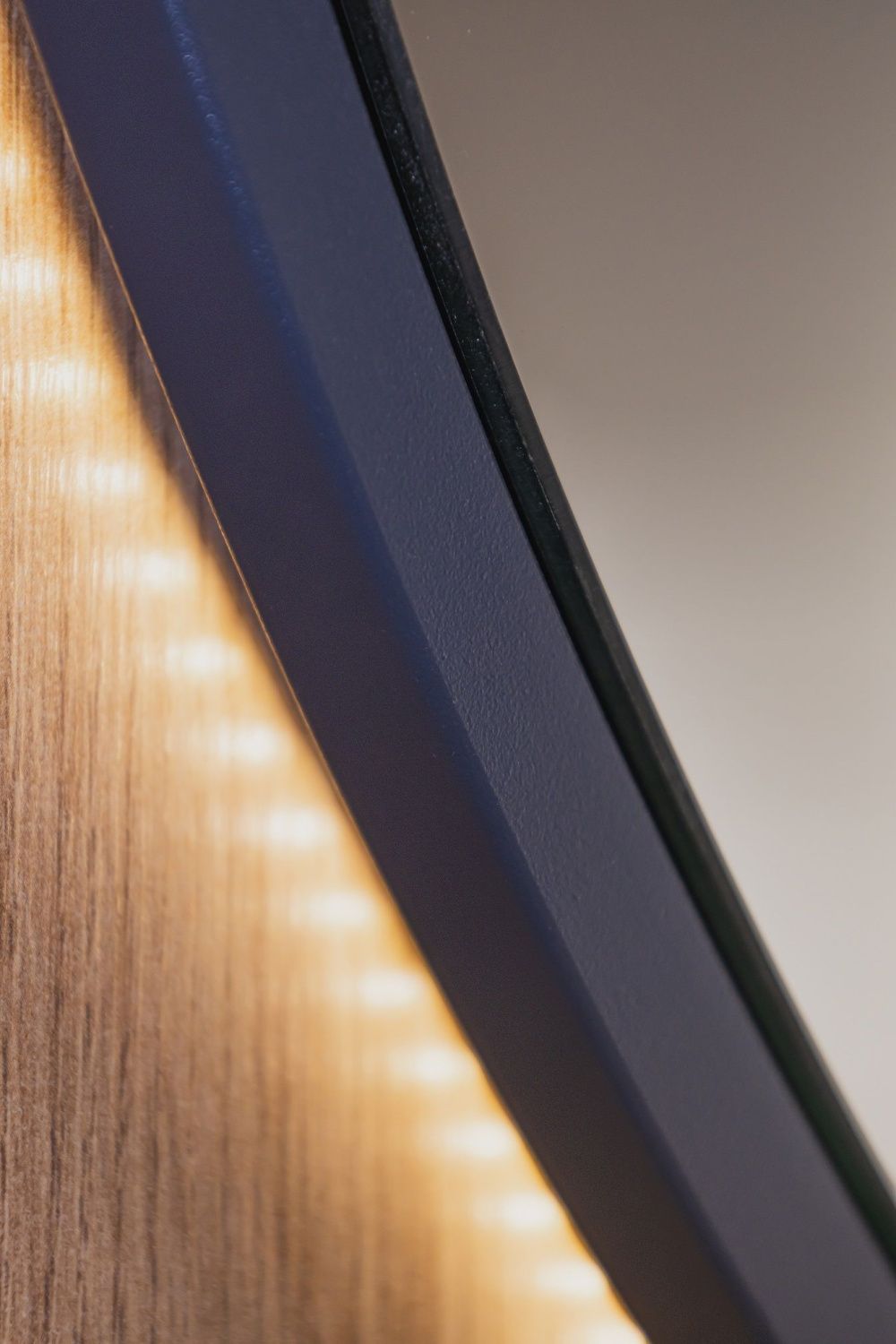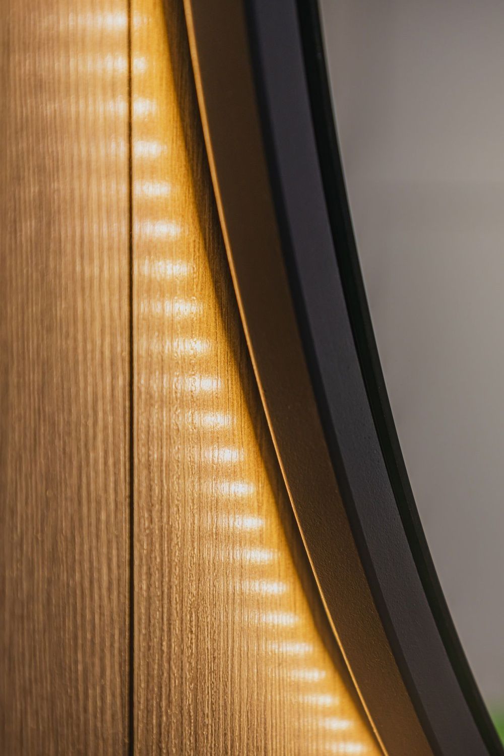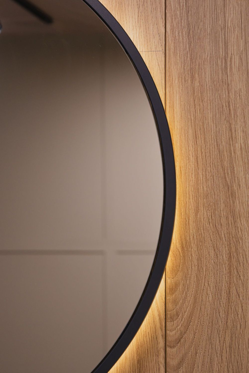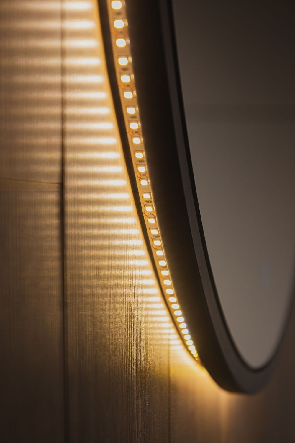 Ореольная подсветка подчеркивает форму зеркала и создает эффект парения.