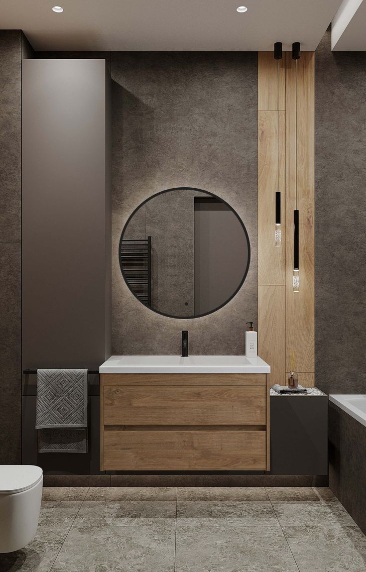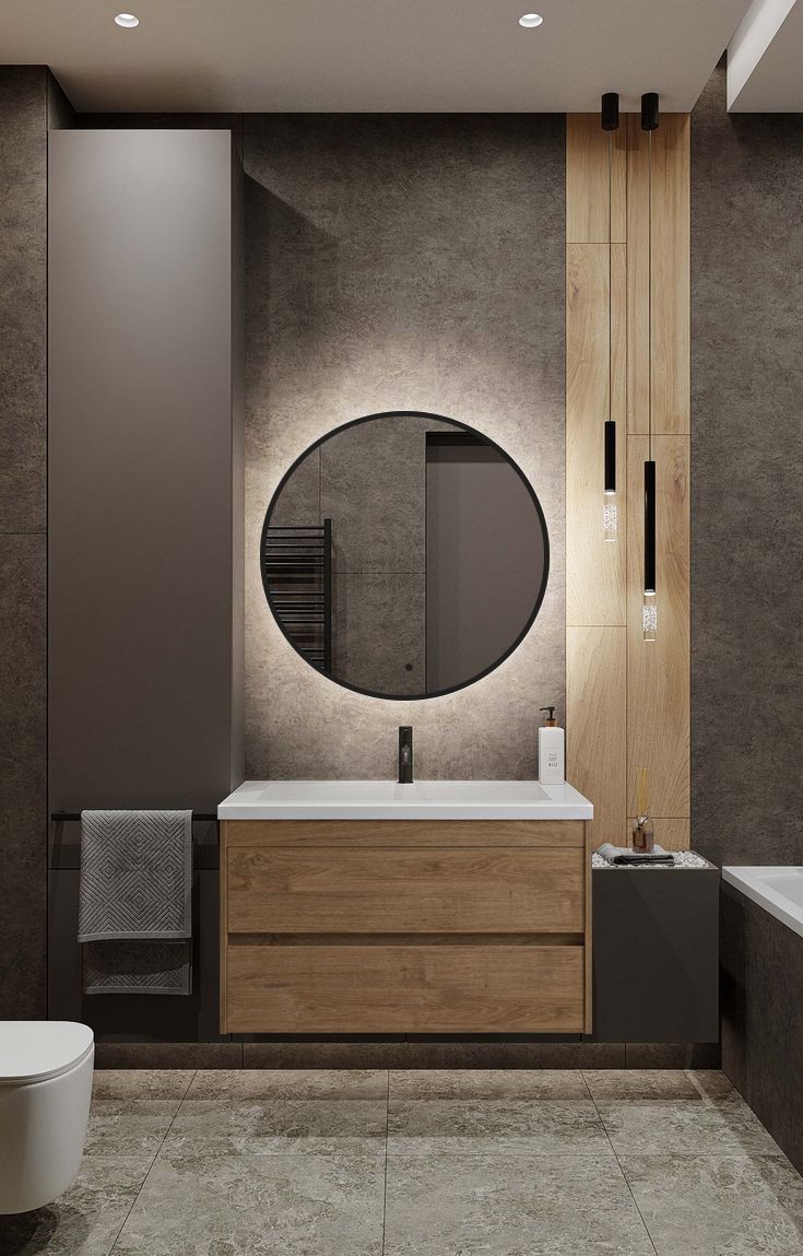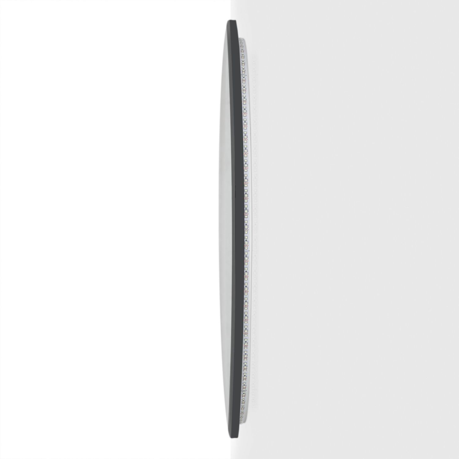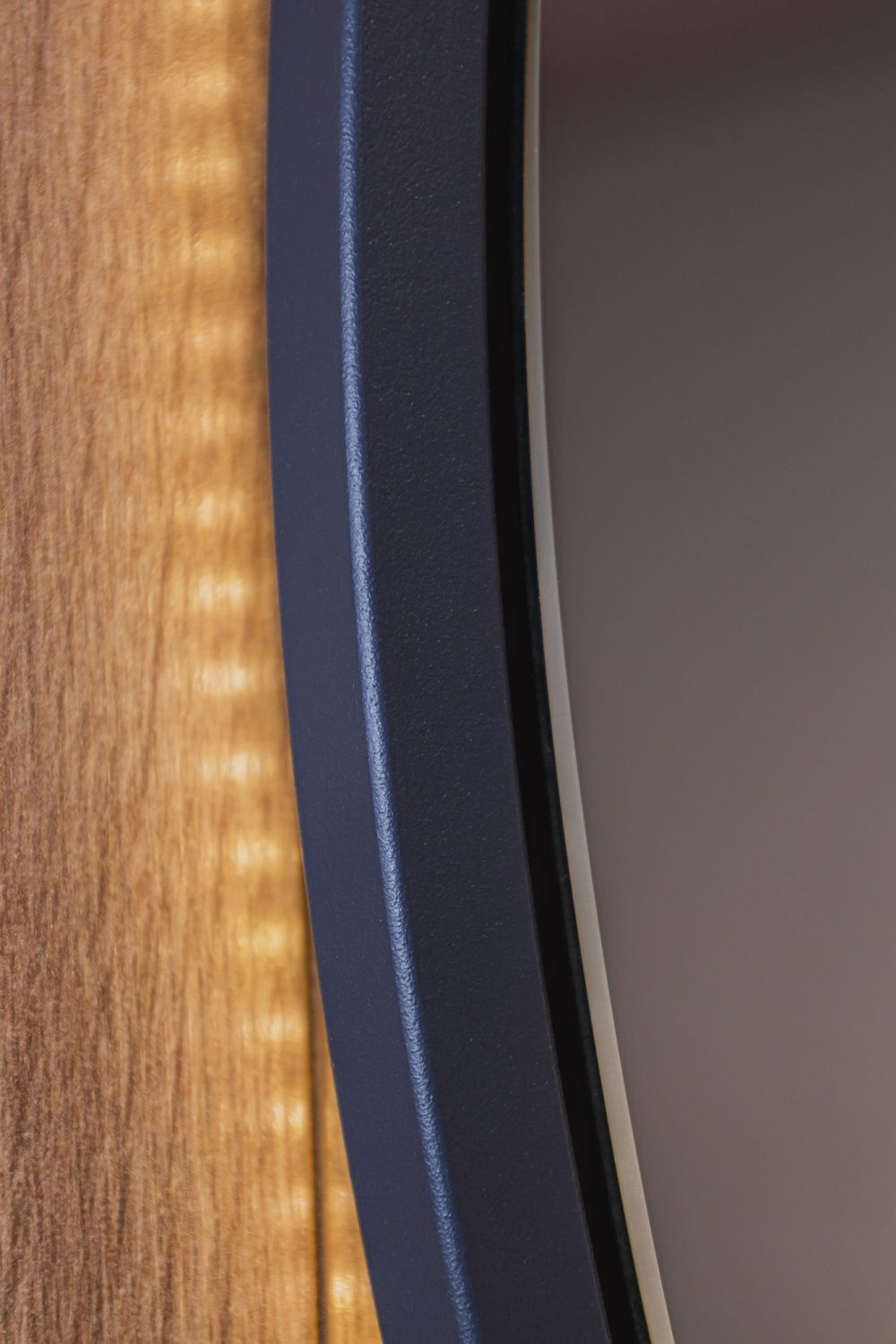 Ореольная подсветка подчеркивает форму зеркала и создает эффект парения.