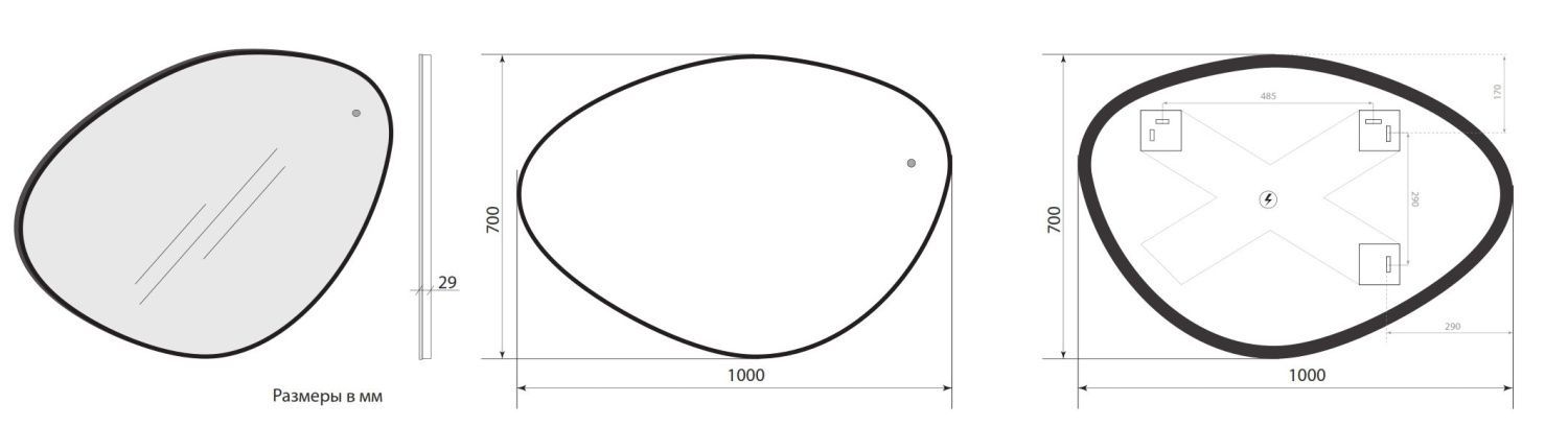 Оснащение: зеркало, крепеж, коробка, инструкция.