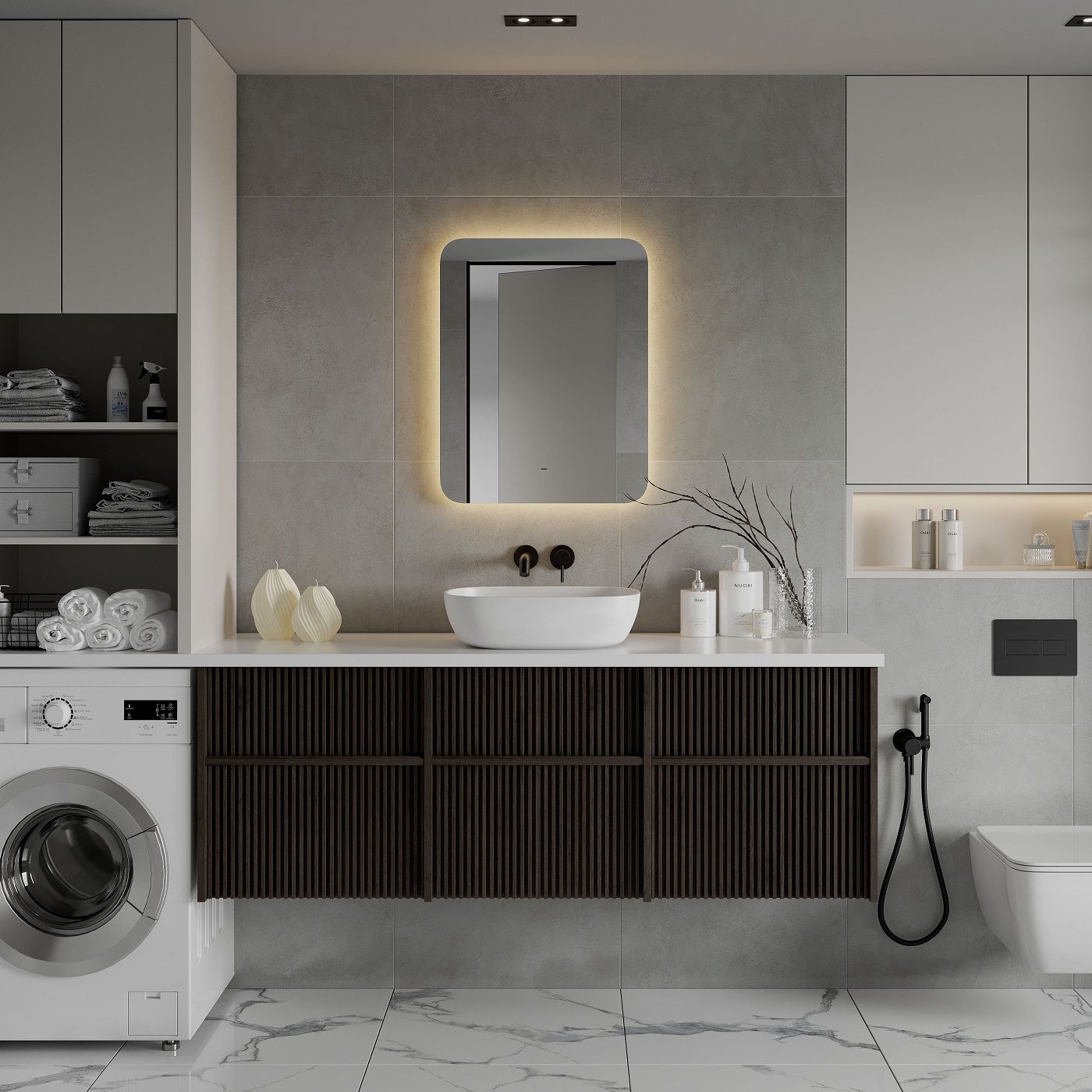 Зеркало, оснащенное светодиодной LED подсветкой с диммером
